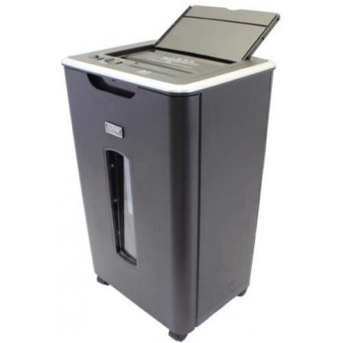 Auto Feed function 60 Sheets. Shreds paper, CD’s & credit cards. Shred capacity: 8 sheets, Cross cut, 4 x 30mm. Security Level: P4 (High Security). Floor standing – easily moved on castors. 5min continuous use.(cool off period 40min) Auto ON / OFF Manual forward / reverse Auto power off when waste bin is full. Auto reverse overload….