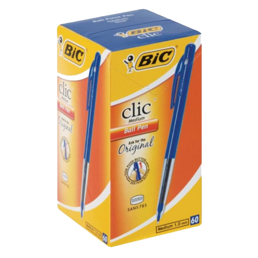 BIC Clic Medium Ballpoint Pens – Blue (Box Of 60)